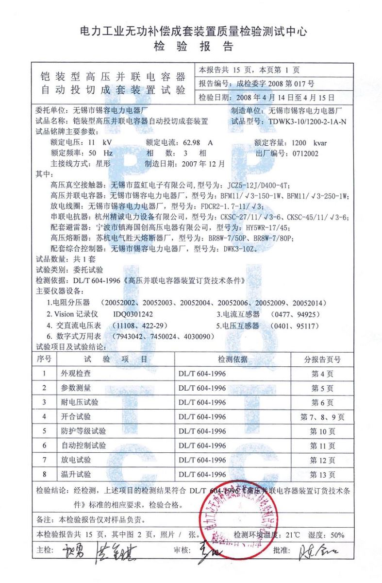 Test report release time:2020-07-20 04:06:13source:Wuxi Xirong Electric Appliance Co., Ltd.Click:1622