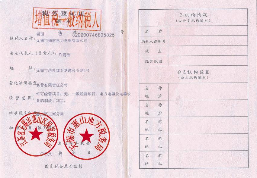 Tax registration certificate release time:2020-07-20 04:34:39source:Wuxi Xirong Electric Appliance Co., Ltd.Click:1853